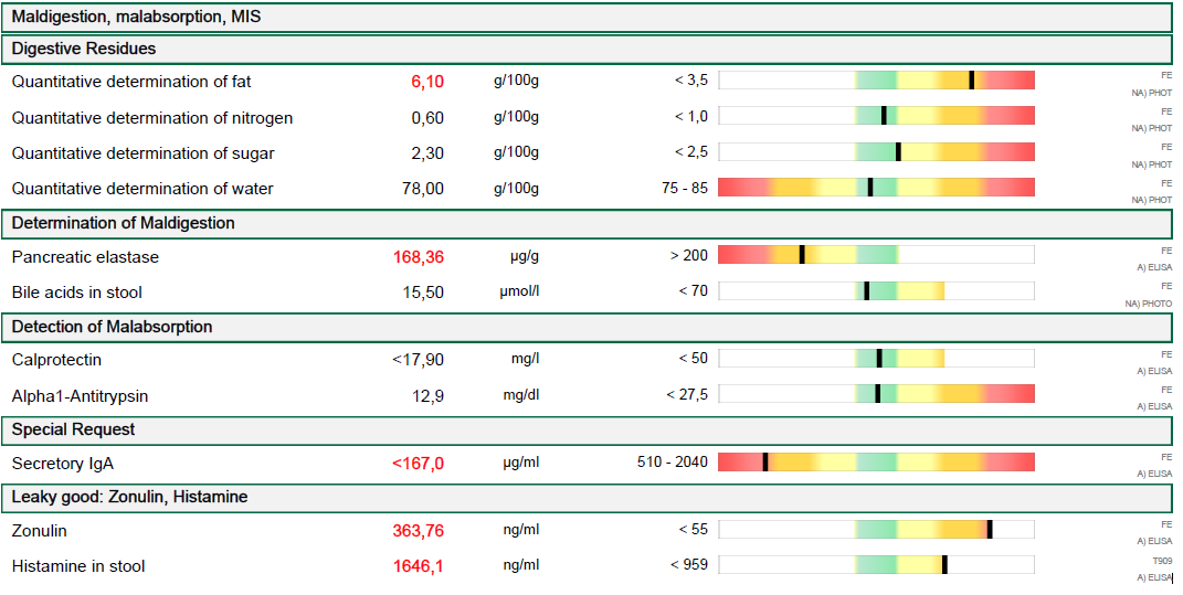 Nabízí široké propojení parametrů, díky kterému dokážeme přesně určit, zda jsou potíže způsobeny dysbiózou, zánětem, oslabenou sliznicí, maldigesci nebo kombinací těchto faktorů.